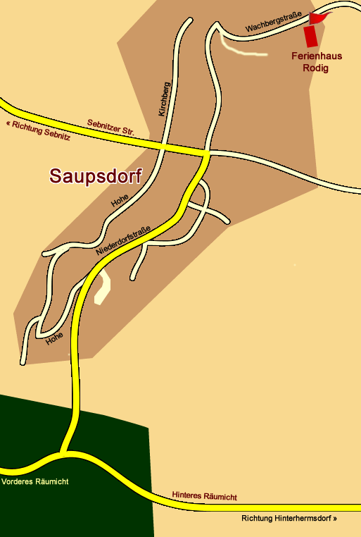Anfahrt von Dresden über die A17 bis Abfahrt Pirna. Sie fahren weiter in Richtung Pirna und kommen direkt auf die B172. Sie fahren auf der B172 bis Bad Schandau in das Zentrum. An der nächsten Kreuzung nach dem Marktplatz in Bad Schandau biegen Sie links von der Hauptstraße ab in Richtung Hinterhermsdorf und fahren durch das Kirnitzschtal bis zu dem Ort Saupsdorf. Sie fahren durch den Ort immer die Hauptstraße, die dann am Ortsende eine starke Linkskuve macht. Sie fahren aber gerade aus weiter und kommen direkt auf die Wachbergstraße. Nach ca.400m kommen Sie rechts zu unserem Ferienhaus. |